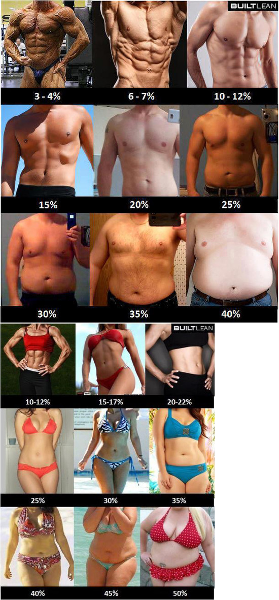 체중에 대한 체지방의 비율로, 정상적인 체지방율은 남자의 경우 10~20%, 여자의 경우 18~28%이다. 내장지방과 피하지방의 비율은 비만 정도와 운동량에 따라 개인차가 큰데, 성인이 되어 비만해지는 경우는 흔히 내장지방이 과다해져 복부 지방율이 높아지는 데 원인이 있다. 이러한 복부비만은 고혈압, 심혈관 질환, 당뇨병 등 성인병의 원인으로 알려져 있다.